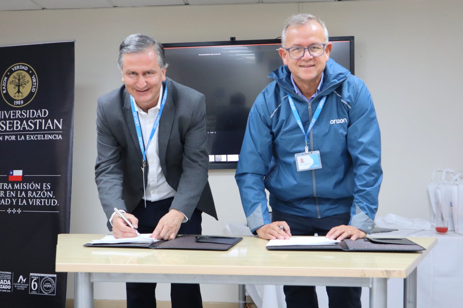 Jorge Sabag, vicerrector de USS Sede Concepción, y Fernando Ayala, gerente de Operaciones de Orizon S.A., firmaron el convenio de colaboración.