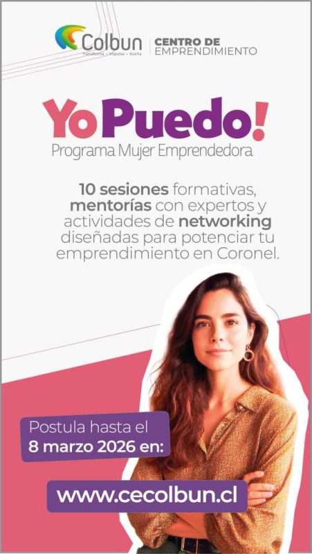 La convocatoria 2026 está dirigida a mujeres mayores de 18 años que residan en Coronel y que lideren emprendimientos en funcionamiento, estén formalizados o no. El foco estará puesto en mujeres que ya dieron el paso de iniciar su negocio y que hoy quieren consolidarlo, mejorar su gestión y ampliar sus oportunidades. Las bases e inscripciones están disponibles en www.cecolbun.cl, y las postulaciones estarán abiertas hasta el 8 de marzo a las 23:59 horas.